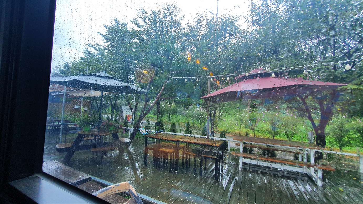 이날은 비가 조금 왔다 그친 날이었다. 창 안과 밖에서 보는 경치가 사뭇 달라 보인다.