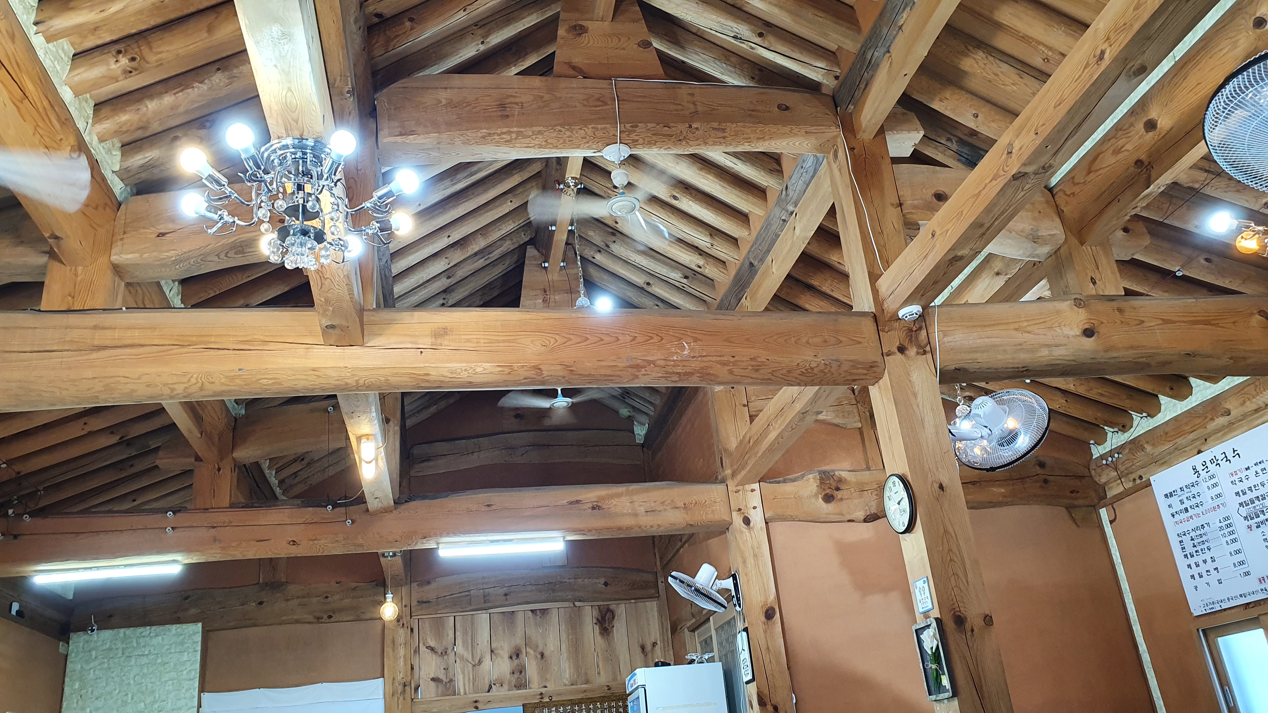 더운 여름에 층고높은 구조와 실링팬들로 에어컨 바람이 강하지 않아도 적당히 쾌적하고 시원하다.