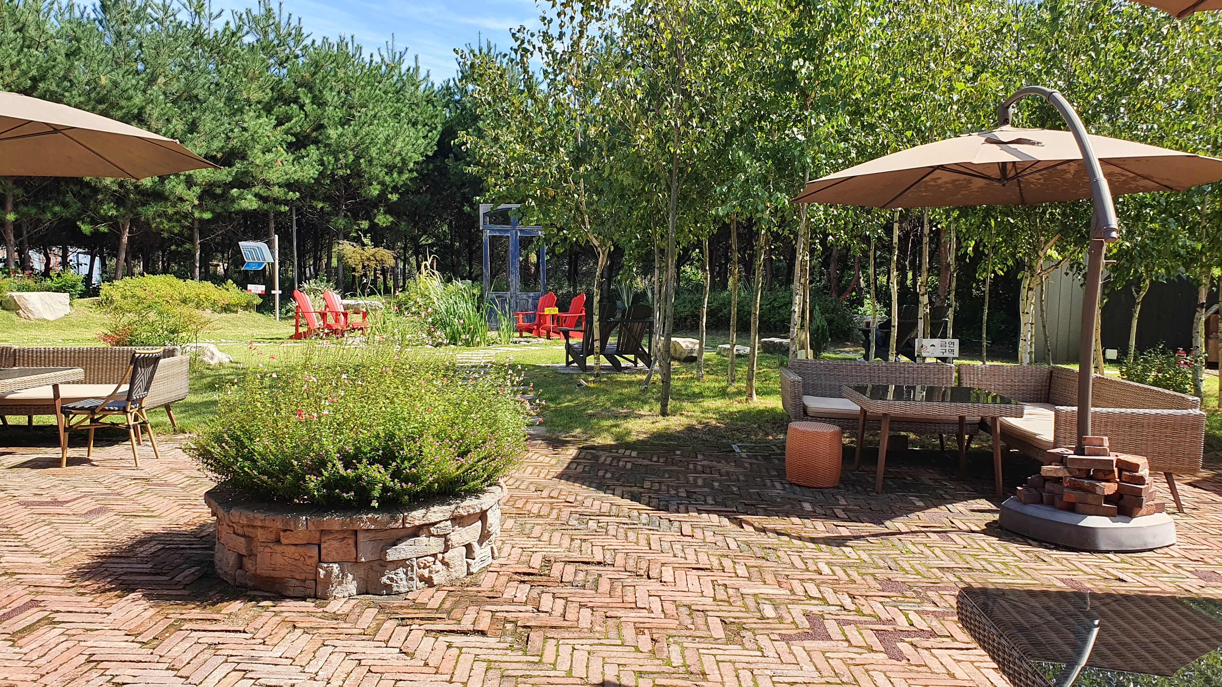 유럽식 노천 카페테리아처럼 업장 앞쪽 공간이 좋다.