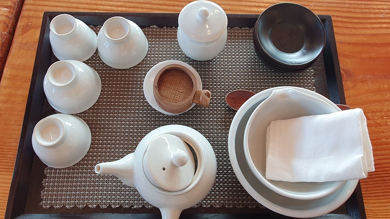 보자기를 안내에 따라 벗겨낸 후 그릇들을 정갈히 정리한다. 이 또한 체험 과정이다.